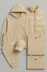 Composé d’un sweat à capuche, d’un pantalon assorti, d’une doudoune légère et d’un t-shirt ton sur ton, il vous offre un look moderne, élégant et prêt à porter pour toutes les saisons.